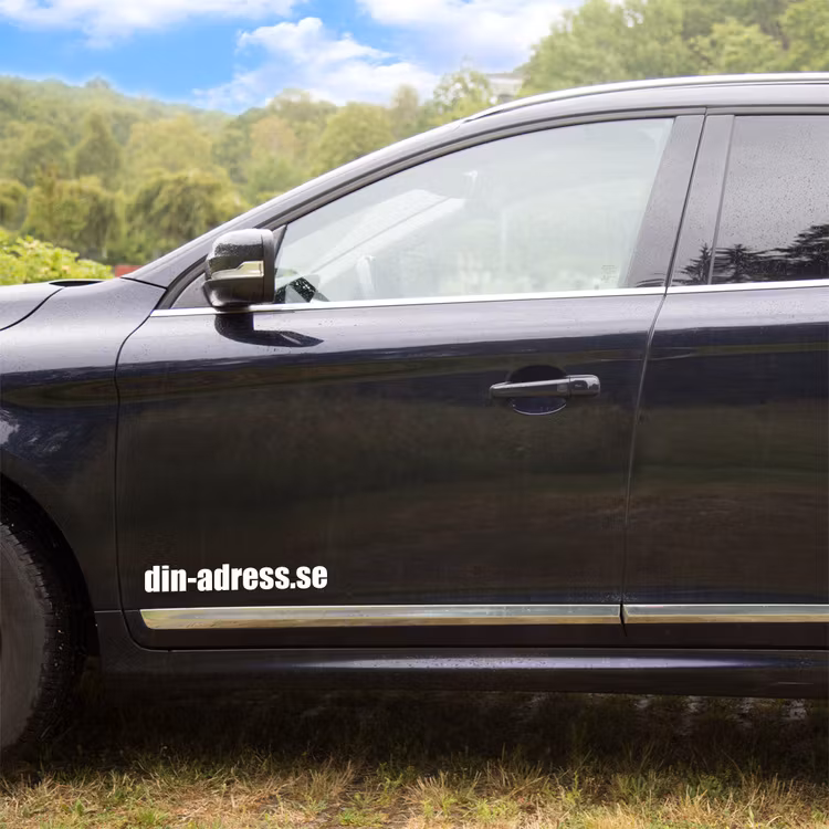 En enkel dekal med exempelvis din webbadress eller telefonnummer. Kan med fördel användas som bildekal.