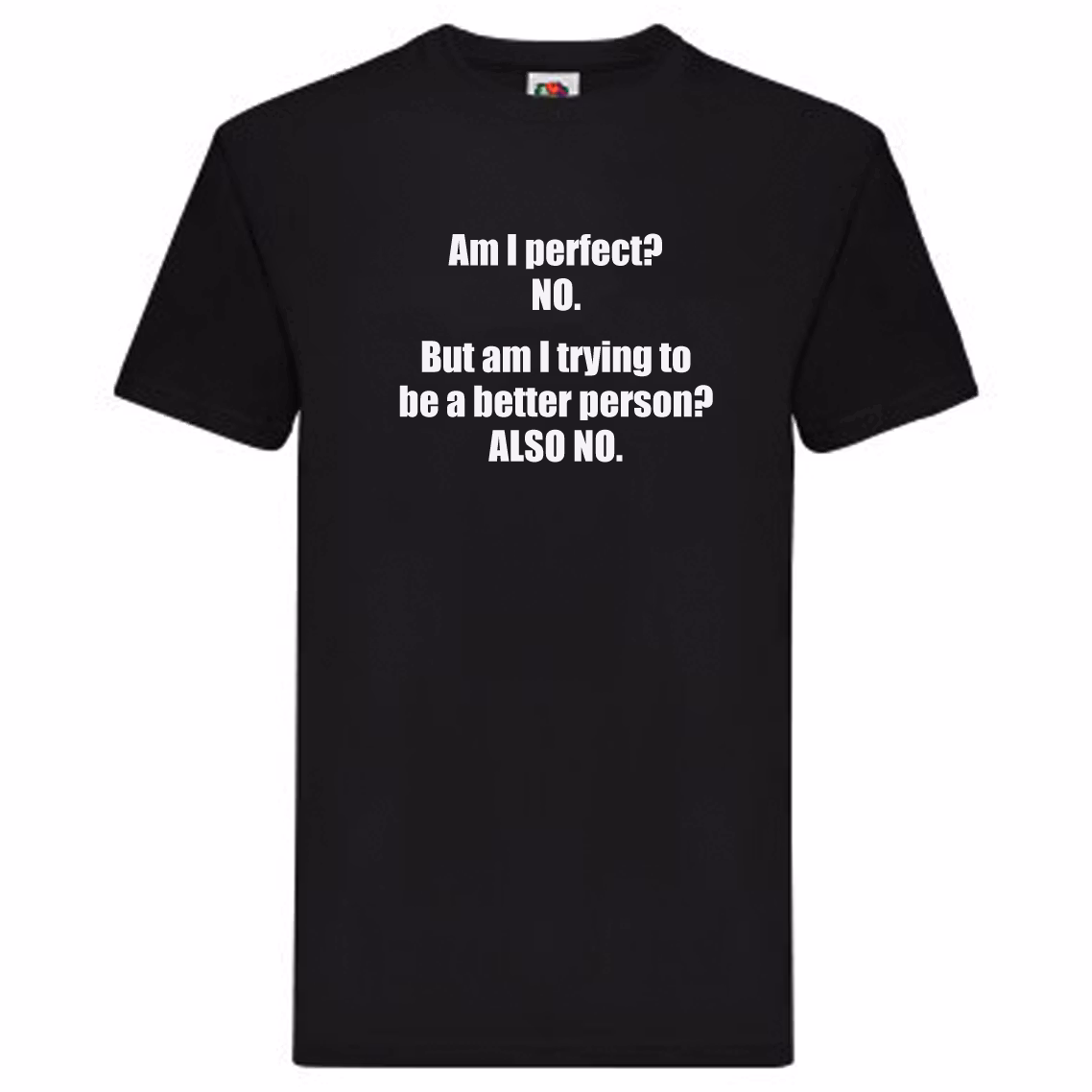 Tydligt. Du är bra som du är och ingen ska säga till dig att du behöver bli bättre. Humoristisk och rolig T-shirt som kan vara bra för den som är envis.