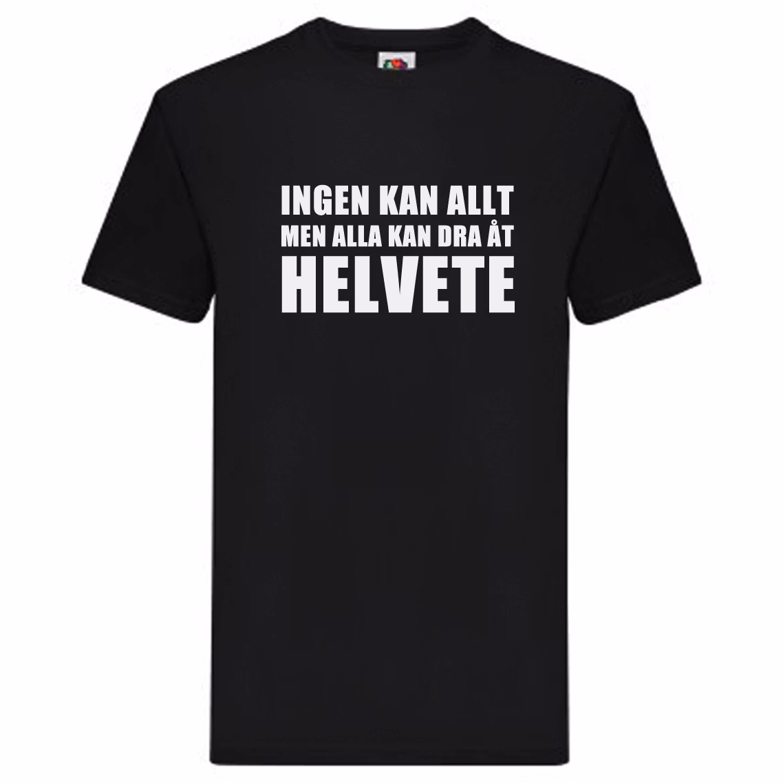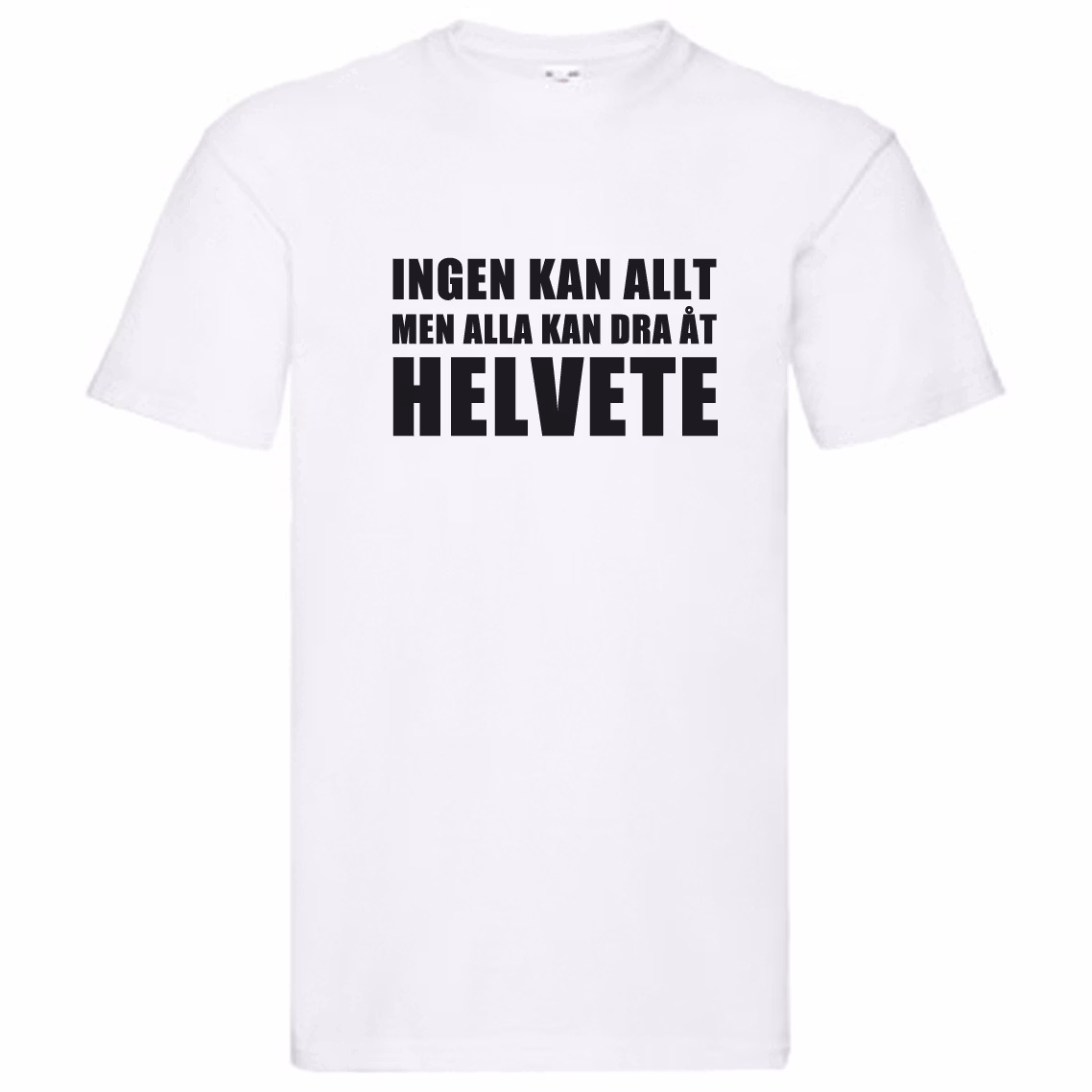 T-Shirt - Ingen kan allt, men alla kan dra åt helvete Färg Svart Vit Storlek S M L XL 2XL 0 kr 199 kr Ingen kan allt, men alla kan dra åt helvete. Klassiskt citat.Fungerar bra när man helt enkelt inte orkar med folk längre.Finns i flera olika färger. Du väljer färg och storlek på T-Shirt. Flera populära produkter T-Shirt - Sweden supporter, v02 Slutsåld T-Shirt - "Aranäsgymnasiet" från 199 kr T-Shirt - Otränad för tillfället från 199 kr T-Shirt - Den snygga T-Shirten var slut från 199 kr T-Shirt - men dö, för helvete, tomtejävel! från 199 kr T-Shirt - Don't dip your pen in company ink, Solsidan från 199 kr T-Shirt - Jag är inte bara snygg, jag är bäst också! från 199 kr Mugg - Det blåser upp till Grogg från 149 kr