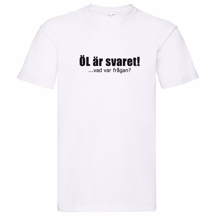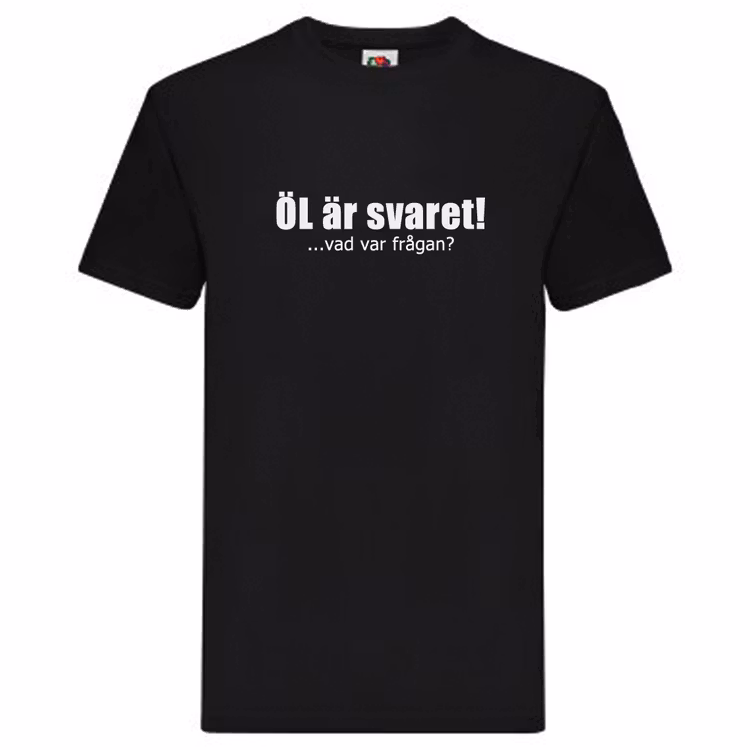 T-Shirt - ÖL är svaret Färg Svart Vit Storlek S M L XL 2XL 0 kr 199 kr ÖL är svaret! Vad var frågan?Det är väl någonting som är gångbart i de flesta lägen? Eller?En T-Shirt att ge till någon som ska på festival, fest, eller helt enkelt gillar ÖL väldigt mycket.Du väljer storlek och färg på T-Shirt. Flera populära produkter Dekal - 30cm, En rad från 49 kr Dekal - 30cm, Två rader från 69 kr T-Shirt - "I Love Frölunda" från 199 kr T-Shirt - "Nygårdsskolan" från 199 kr T-Shirt - "Why so serious?" från 199 kr T-Shirt - Full? Man kan väl ramla ändå? från 199 kr T-Shirt - Alkohol löser inga problem, inte mjölk heller från 199 kr T-Shirt - Fan också, the PLÅNKAN is at home, Solsidan från 199 kr