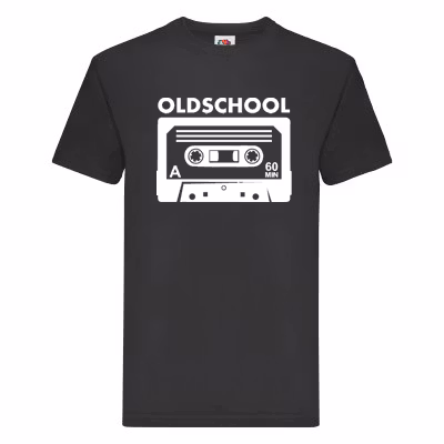 En T-Shirt som verkligen visar att du är just "Oldschool". Komplett med kassettband från förr.