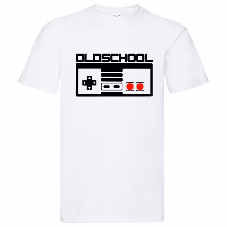 En T-Shirt som verkligen visar att du är just "Oldschool". Komplett med spelkontroll från förr.