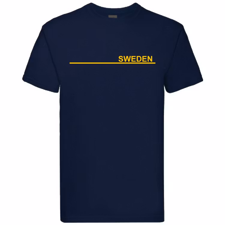 En original design från Media-S med "SWEDEN" på vänster sida om bröstet, kombinerat med en rak linje under. Enkel och ren design, som passar till alla typer av sporter.