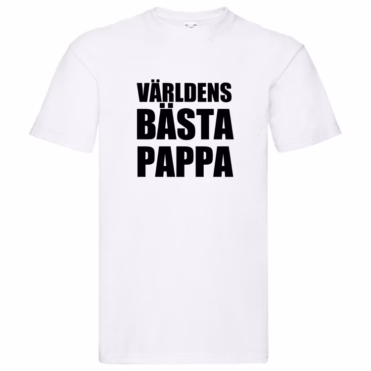 Orden VÄRLDENS BÄSTA PAPPA rakt över bröstet i svart eller vitt.